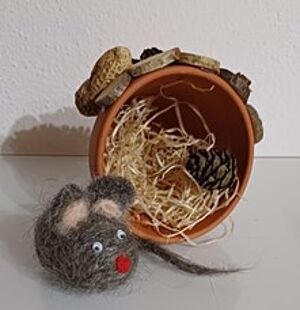 Die Mäuschen stellen sich auf den Winter ein! Wir filzen eine kleine Maus und geben ihr ein Zuhause in einem bunten Tontopf, den wir bemalen und mit verschiedenen Naturmaterialienbekleben.
