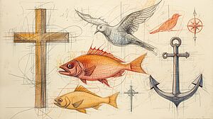 Christliche Symbole spielen im Glauben eine wichtige Rolle, da sie zentrale Inhalte des Christentums sichtbar und begreifbar machen. Eines der bekanntesten Symbole ist das "Kreuz", das an den Tod und die Auferstehung Jesu Christi erinnert und für Hoffnung, Erlösung und neues Leben steht. Der "Fisch" (Ichthys) war in der frühen Christenzeit ein geheimes Erkennungszeichen und verweist auf Jesus als den Sohn Gottes und Erlöser. Die "Taube" symbolisiert den Heiligen Geist sowie Frieden und Gottes Nähe. Das "Licht" oder die "Kerze" steht für Christus als "Licht der Welt" und für Orientierung im Glauben. Durch diese Symbole werden christliche Glaubensinhalte über Generationen hinweg weitergegeben und im Alltag erfahrbar gemacht.